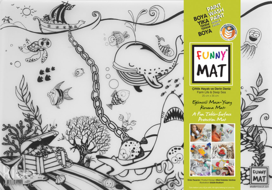 Funny Mat ikili set, her türlü etkinlik sırasında masa ve yüzey koruyucu olarak kullanılabilen bir üründür. Üzerinde yemek yenebilir, kil ve oyun hamuru ile oyun oynanabilir, ders çalışılabilir, boyama yapılabilir… Kendisi de bir etkinlik materyali olan Funny Mat'ın üzerindeki desenler hem keçeli kalemlerle hem de kuru boyalarla istenildiği gibi renklendirilebilir ve çocuklar bu sayede yaratıcılıklarını geliştirebilirler. Suyun altına tutulduğunda veya ıslak mendille silindiğinde kolaylıkla temizlenen Funny Mat, defalarca renklendirme ve aynı ürünü farklı amaçlarla kullanma imkânı vererek bütçe dostu bir ürün olma özelliği de taşımaktadır.