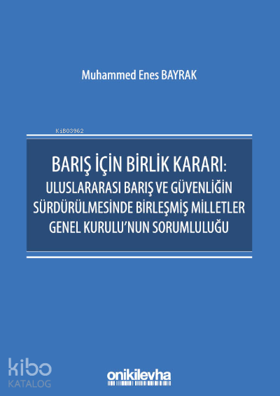 Barış İçin Birlik Kararı, Birleşmiş Milletler Genel Kurulu tarafından 1950 tarihinde, sistemin veto kaynaklı tıkanması dolayısıyla alınmıştır. Karar, Güvenlik Konseyi'nin başarısız olması durumunda kuvvet kullanılmasını da içerebilecek kolektif önlemlerin Genel Kurul eliyle tavsiye edilmesine dairdir. Güvenlik Konseyi'nin çatışma durumlarında ve insancıl gerekliliklerin varlığı hallerinde artan bir eğilimle pasif konumda kalması, uluslararası barış ve güvenlik konusunda ikincil sorumluluğa sahip organ olan Genel Kurul'un harekete geçmesini zaruri kılmaktadır. Bu kitap, daimi üyelerin vetosu sebebiyle ortaya çıkan çözümsüzlüğe bir alternatif teşkil edebilecek olan Barış İçin Birlik Kararı'na ilişkindir.(ARKA KAPAKTAN)