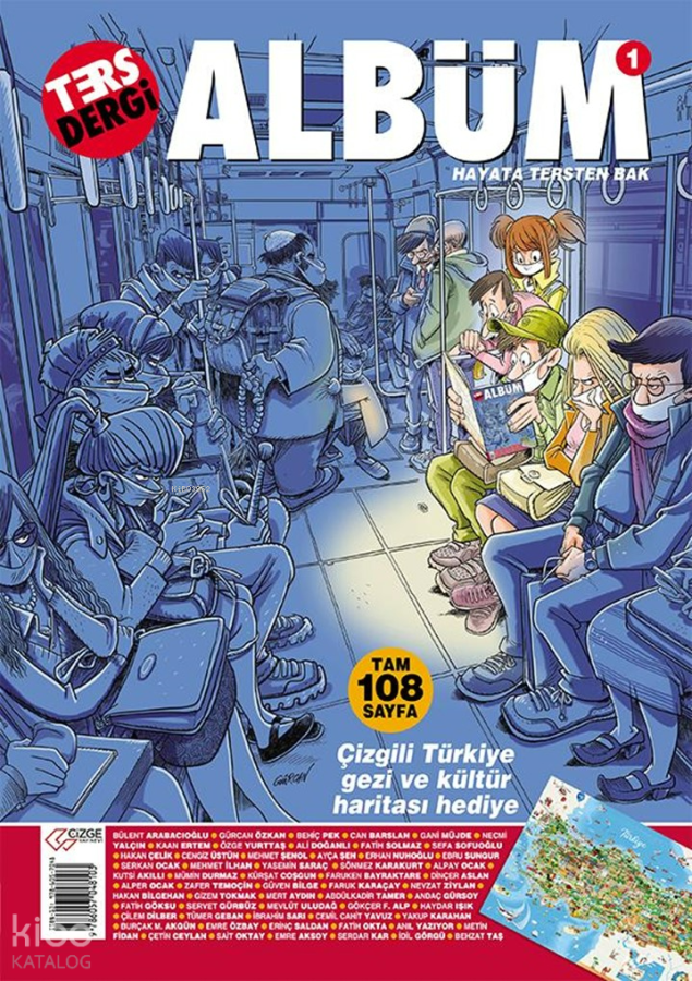 –Çizgi ve edebiyat dünyamızın usta isimleri bu proje için bir araya geldiler. Ters Dergi ALBÜM, pek çok rengi buluşturan özel bir yayın niteliği taşıyor. Mizah dergilerinden aşina olduğumuz çizgi karakterler, toplumsal/tarihsel öyküler, seçme yazı ve çizgilerden oluşan 108 sayfalık ALBÜM kütüphanelerde yer almayı hak eden bir çalışma. Üstelik dev boy Türkiye Çizgili Gezi ve Kültür haritası ile birlikte.
