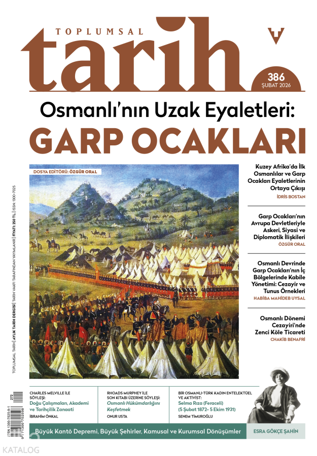 Şubat sayımızın dosya konusu, Garp Ocakları. İdris Bostan, Kuzey Afrika'da Osmanlı yönetimine ve Ocakların ortaya çıkışına odaklanıyor. Dosya editörü Özgür Oral, merceği Garp Ocakları'nın Avrupa Devletleriyle askeri, siyasi ve diplomatik ilişkilerine çeviriyor. Habiba Mahideb Uysal, Cezayir ve Tunus'taki Osmanlı-kabile ve aşiret ilişkilerini, Chakib Benafri ise Osmanlı Cezayiri'ndeki köle ticaretini inceliyor.